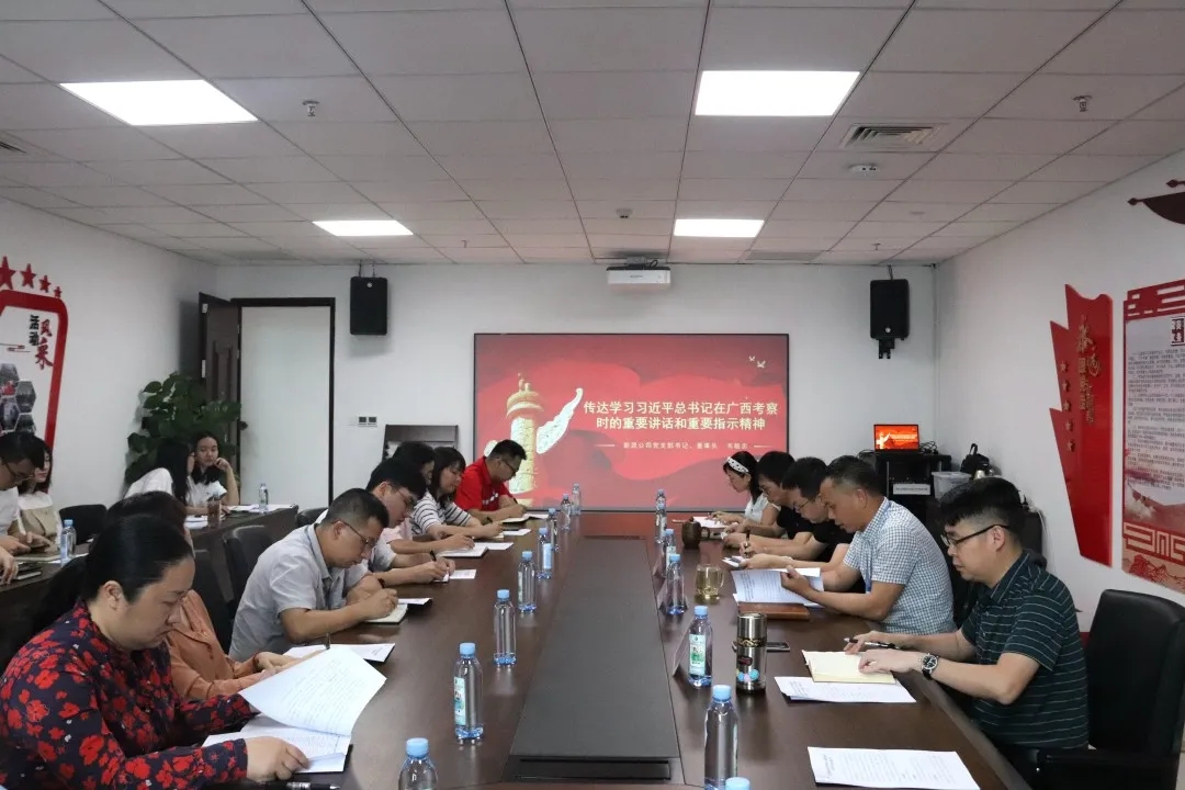 交流研討會分為“精華解讀”和“分享交研”兩大環(huán)節(jié)。在“精華解讀”環(huán)節(jié)中,韋敏忠董事長傳達學(xué)習(xí)了習(xí)近平總書記在廣西考察時的重要講話和重要指示精神,帶領(lǐng)大家集體觀看黨史教育視頻《革命理想高于天》,從習(xí)近平總書記的指示精神及黨的百年偉大奮斗歷程中汲取繼續(xù)前進的智慧和力量。