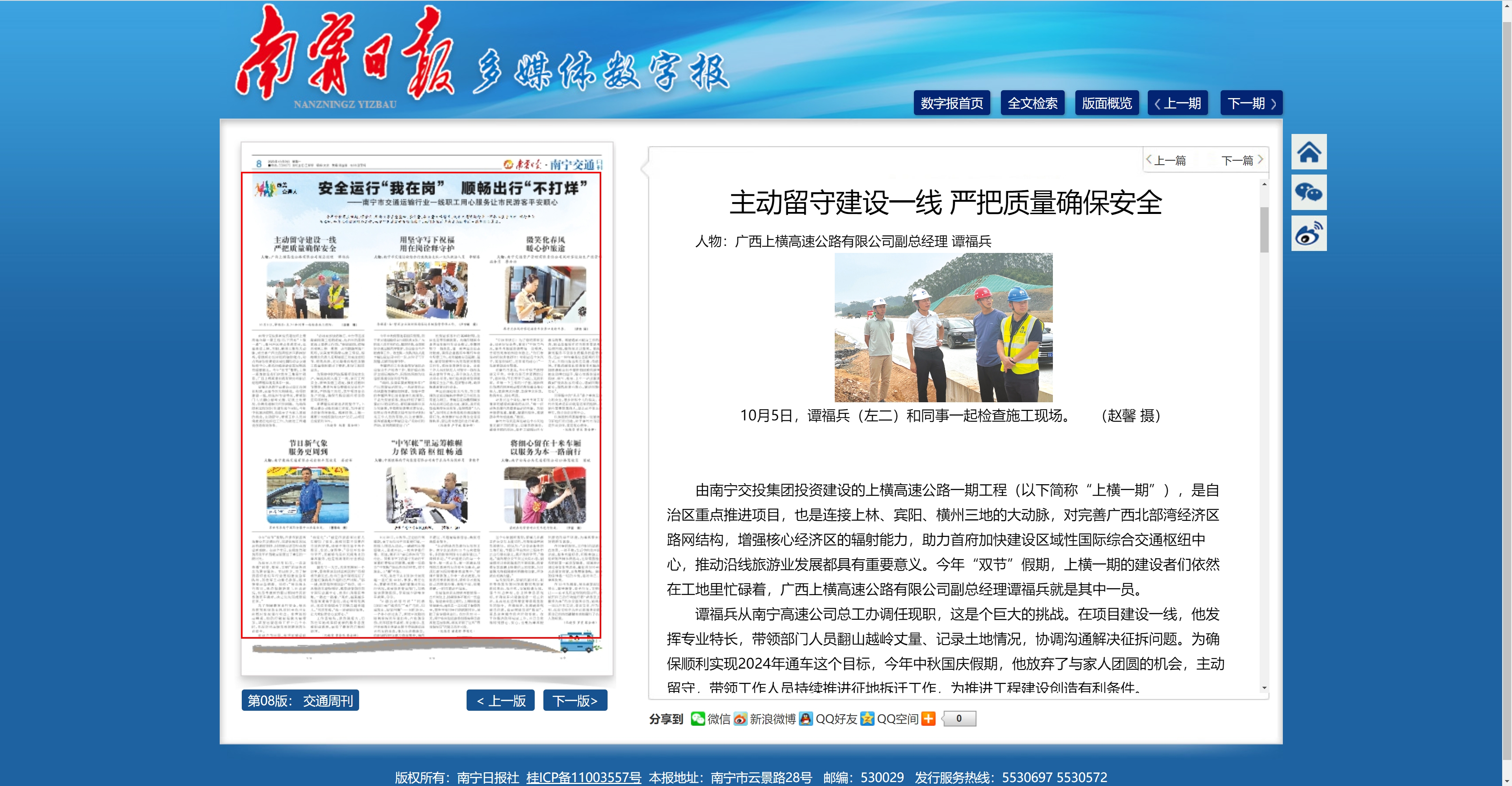 主動留守建設(shè)一線 嚴(yán)把質(zhì)量確保安全-廣西上橫高速公路有限公司副總經(jīng)理 譚福兵