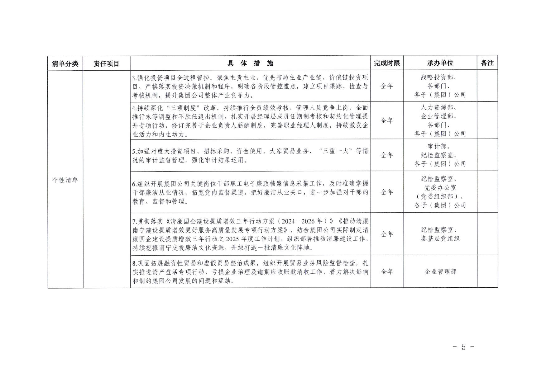 南寧交投集團領導班子2025年度黨風廉政建設主體責任清單